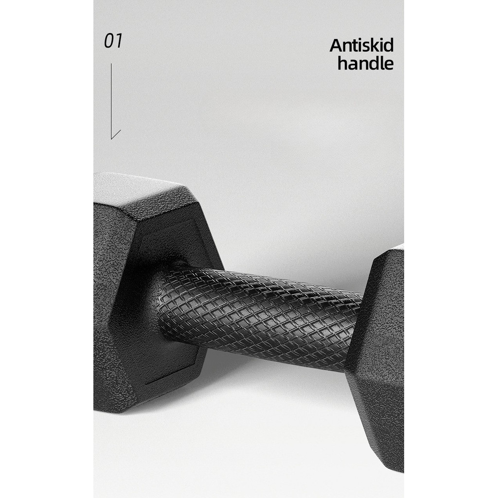 – Desain Hexagonal (Segi Enam) – Menghindari dumbbell bergulir saat diletakkan di lantai, lebih aman digunakan.